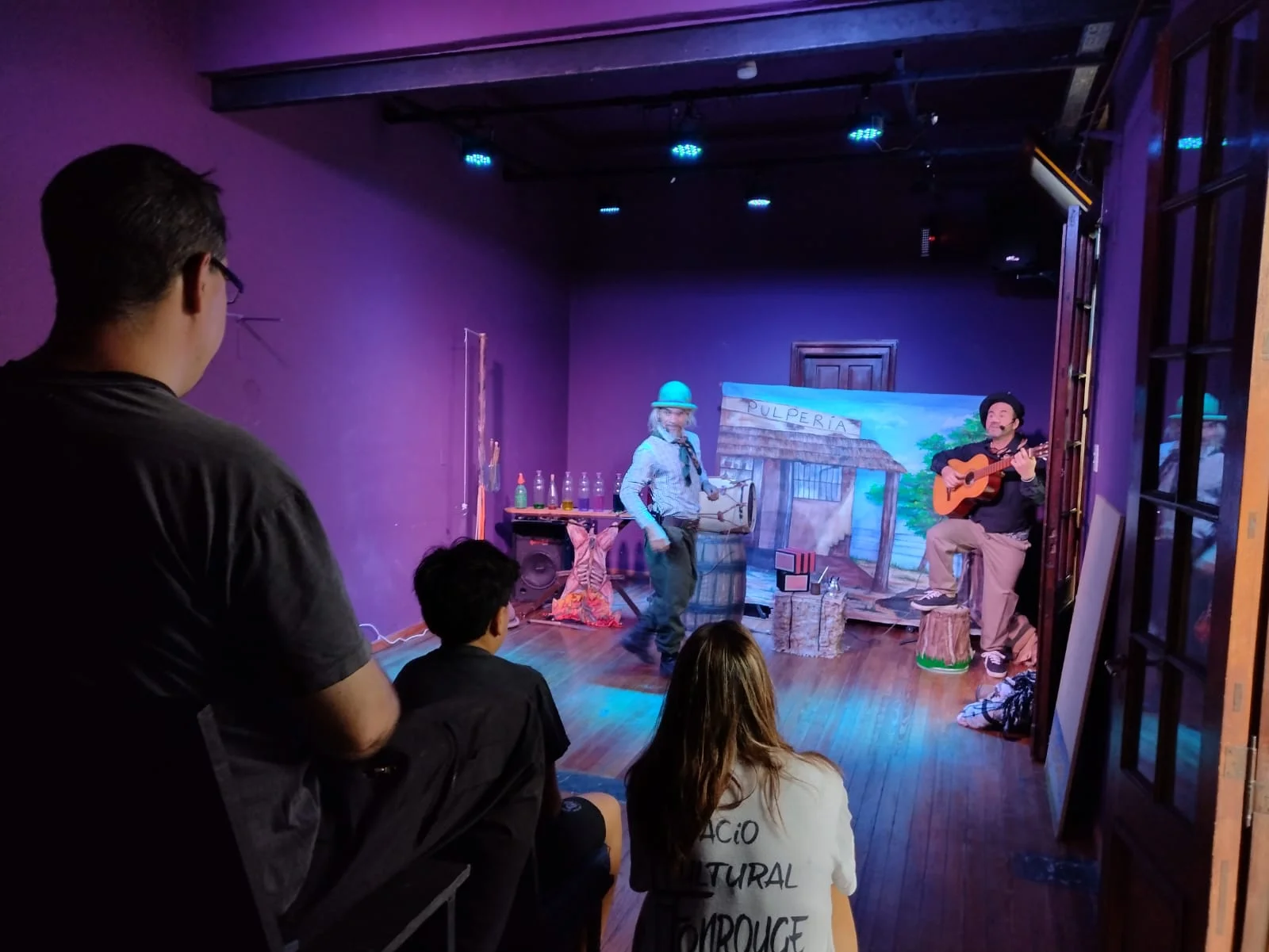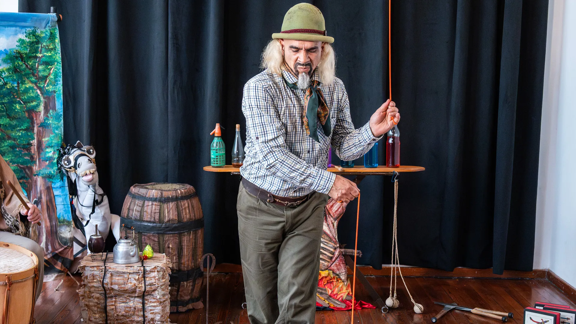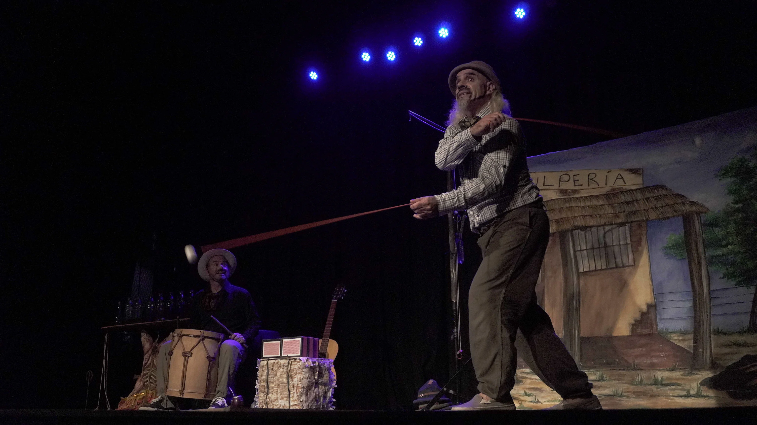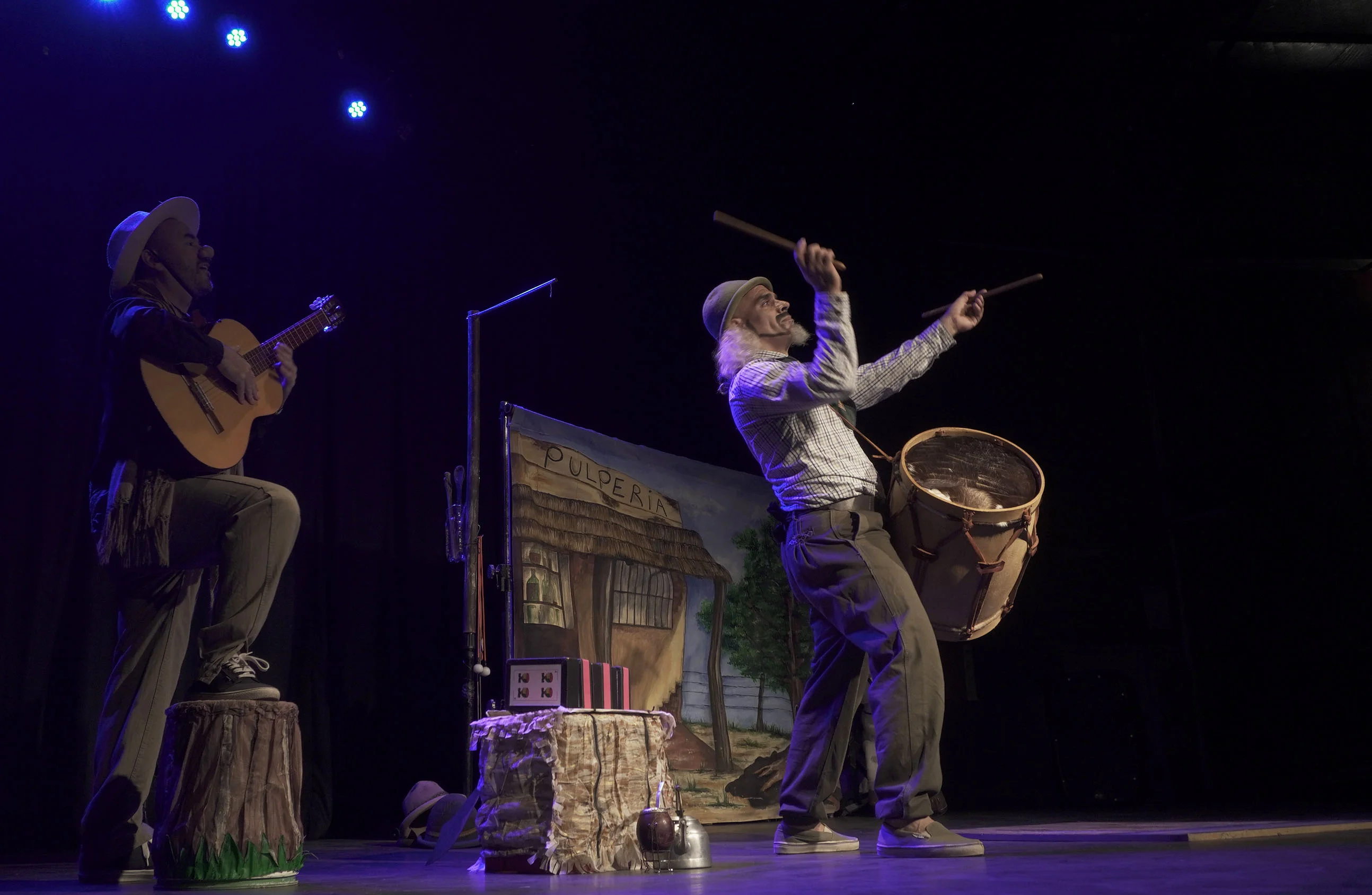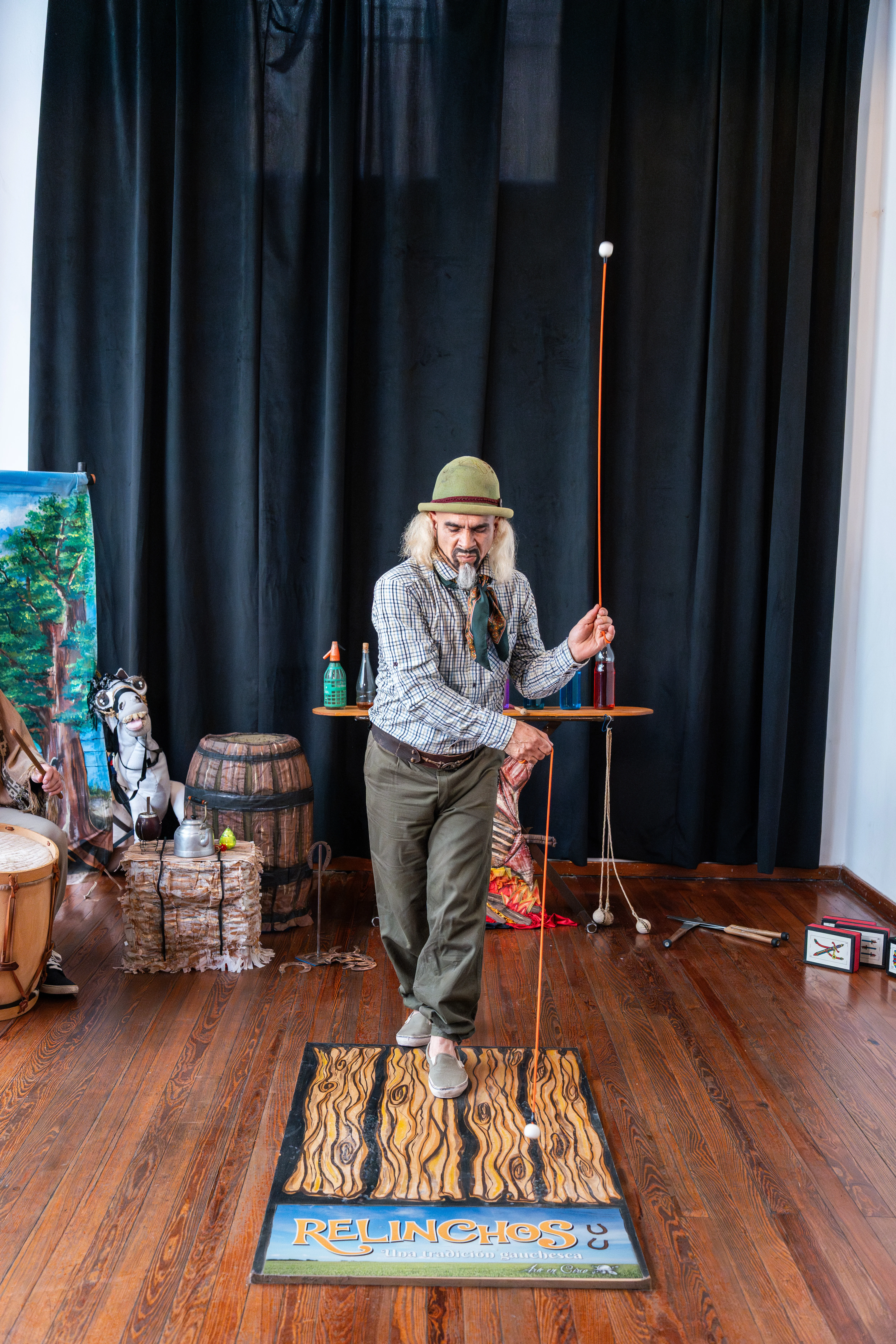 Es una obra muy pícara, con música en vivo, guitarra criolla, bombo legüero, payadas contrapuntos, técnicas de Boleadoras –Malambo Fantasía- Manipulación de sombreros, manejo de facones y malabares, el juego del truco con asombrosos naipes españoles, mate, asado, botellas afinadas, y un caballo a domar para la destreza de la sortija- con zancos acrobáticos- al ritmo de un gato.